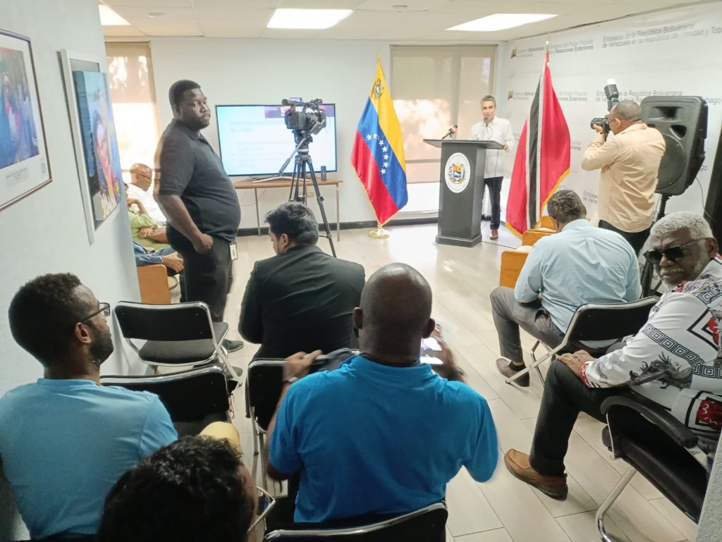 En rueda de prensa ofrecida en la sede de la Embajada en Puerto España, el Jefe de Misión calificó como una “fabricación sin fundamento”, utilizada como pretexto por Washington para justificar el despliegue de activos militares en el Caribe, cerca de las fronteras venezolanas, con el objetivo de promover un cambio de gobierno en el país.