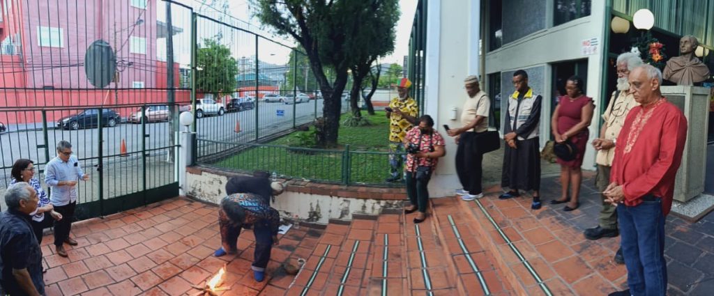 Puerto España, 22 de enero de 2026.- En un esfuerzo de solidaridad y apoyo al pueblo venezolano, organizaciones sociales de Trinidad y Tobago se concentraron en los espacios de la Embajada de Venezuela en Puerto España, y realizaron una vigilia espiritual y una ceremonia tradicional de fuego, en honor a los caídos en el bombardeo realizado por Estados Unidos (EEUU) contra el país suramericano, en el que perecieron más de 100 personas.